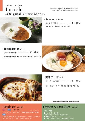 ゆったりとした店内では九州パンケーキのバラエティ豊かなパンケーキメニューやここでしか味わえない九パンを使ったメニュー、オリジナルカレー、スペシャルティコーヒーも楽しめます。